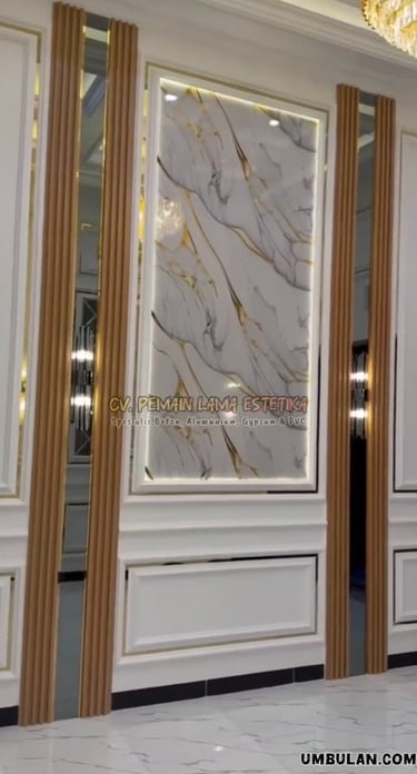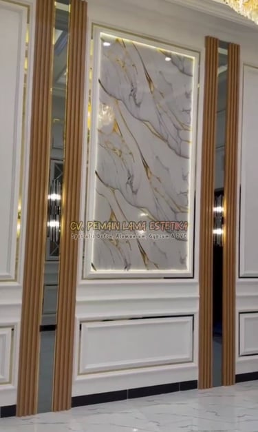 Upgrade tampilan ruangan Anda tanpa renovasi besar! Kami hadirkan desain wall moulding gypsum eksklusif yang dikombinasikan dengan kaca bevel elegan dan list PVC gold yang mewah namun ekonomis.